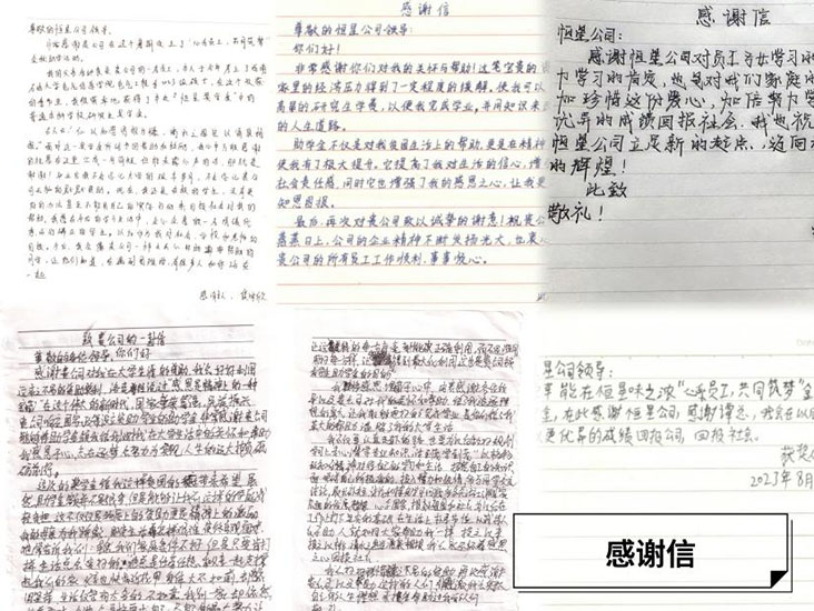 然后,這是來自優(yōu)秀學子們一封封親筆感謝信,公司非常高興能看到,這份獎學金對學子們產(chǎn)生了積極的影響,讓您在求學路上邁出堅定的一步。這一封封感謝信讓我們深感責任重大。未來味之濃食品將繼續(xù)關(guān)注員工的成長和發(fā)展,為員工家庭提供更好的關(guān)懷。