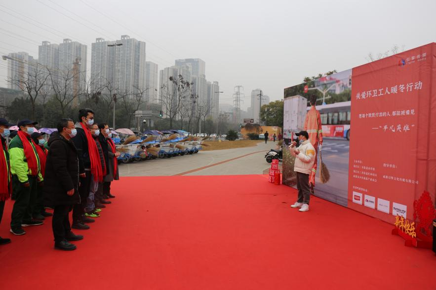 2022年1月20日上午10點(diǎn),在成都市三圣鄉(xiāng)街道辦事處的統(tǒng)一組織下,四川恒星食品有限公司(下文中簡(jiǎn)稱“恒星食品”)攜手成都引擎?zhèn)髅剑e行“關(guān)愛(ài)環(huán)衛(wèi)工人暖冬行”活動(dòng),在慰問(wèn)環(huán)衛(wèi)工人的同時(shí)也送上了一份暖心的新年禮物。
